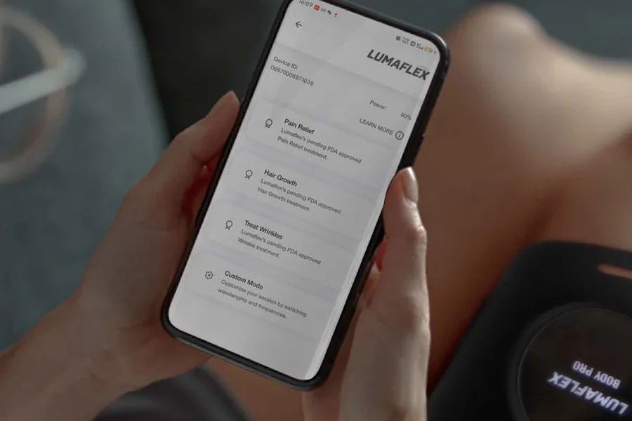 | Commandes et fonctions avancées | Réglage de la fréquence lumineuse via l'application Lumaflex (10-30 Hz, 40-70 Hz, 80-100 Hz pour différents modes). |
