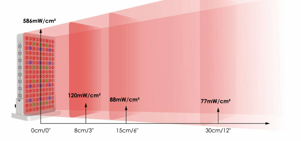 Area di irradiazione: terapia mirata e total body con treppiede, potenza >586 mW/cm².