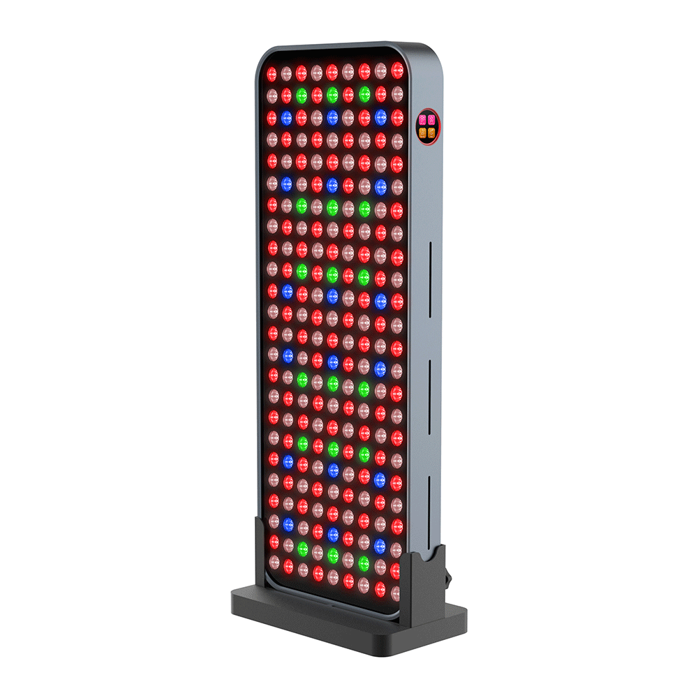 Luxusní hliníkový panel červeného, blízkého infračerveného i barevného světla včetně stojanu, s bezkonkurenční úrovní irradiance (>587 mW/cm²).