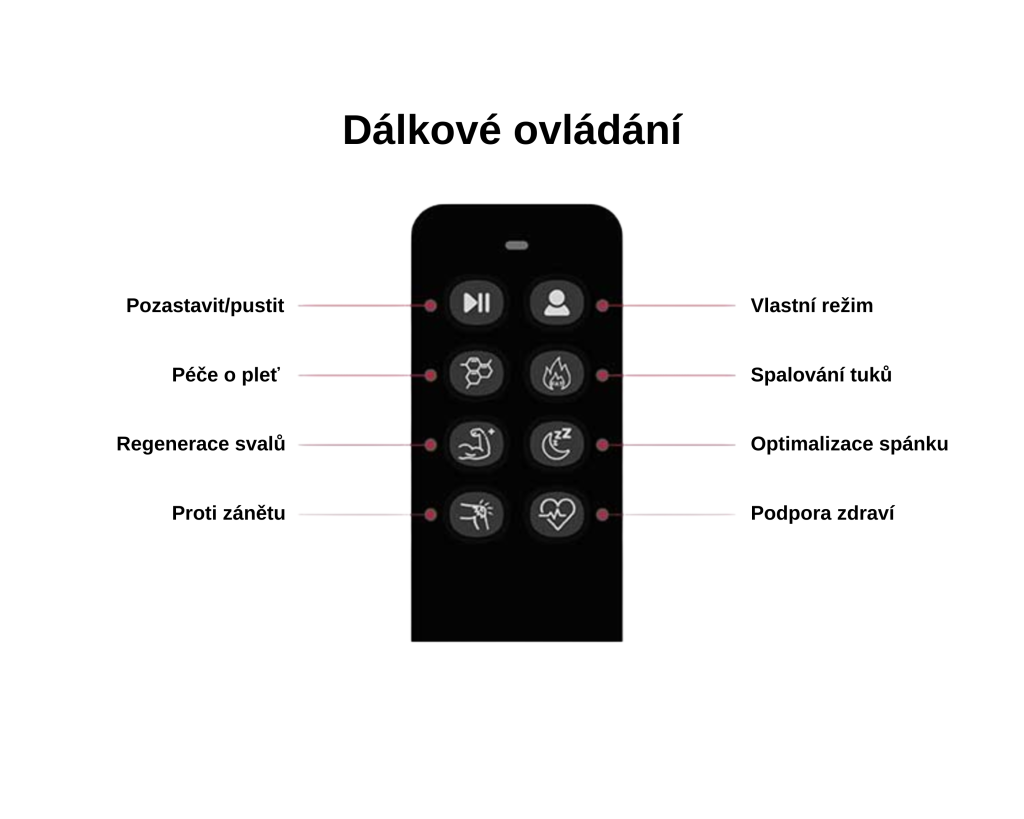 - Regenerace svalů a kloubů – infračervené světlo proniká do hloubky a urychluje obnovu.